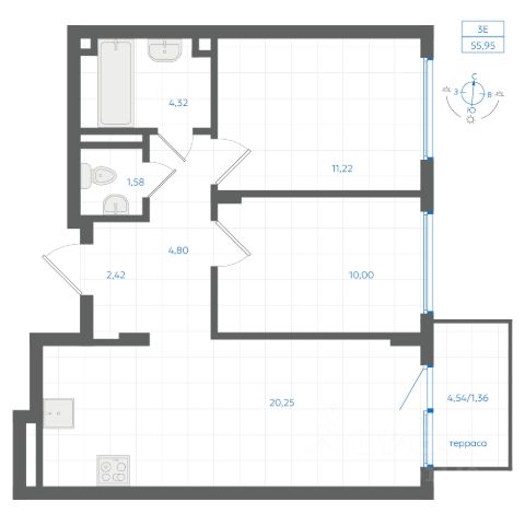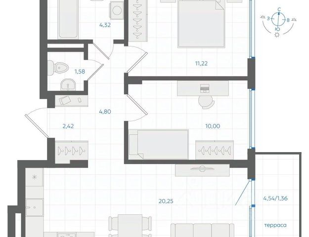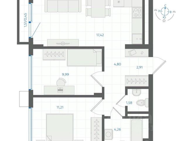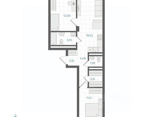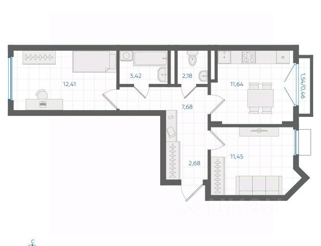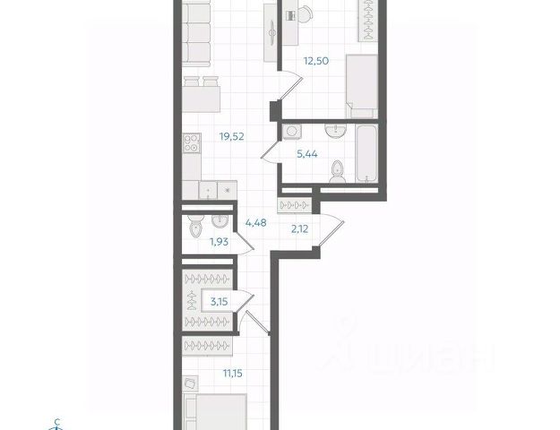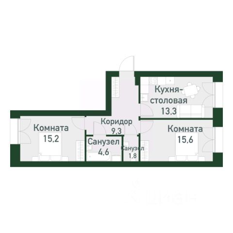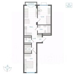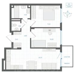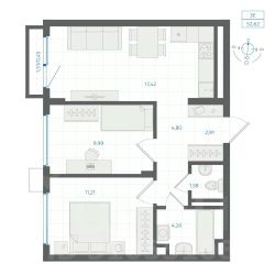 Арт. 118596330 В продаже 2-комнатная квартира 49,43 м2 в комплексе "Центральный парк" комфорт-класса.