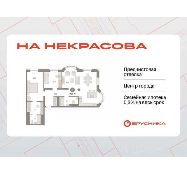 Квартира с кухней-гостиной и двумя спальнями в квартале "На Некрасова". Особенности планировки: второй санузел, гардеробная, вид во двор, лоджия, разнесённые спальни, предчистовая отделка, мастер-спальня. квартиры в нашей базе: НКР02-Ж1.9.6. Квартал "На Некрасова" состоит из четырёх домов переменной высотности от 7 до 25 этажей с тихими дворами и подземным паркингом. Особенность квартала — общественные пространства и благоустройство нового уровня: городская площадь с фонтаном, центральный пешеходный бульвар, ландшафтный парк, камерные сады и зелёные кровли домов. Из окон квартир открывается вид на Исеть. В квартале спроектированы помещения под магазины, кафе, аптеки и соседский центр. Проект расположен в центре Екатеринбурга в границах улиц Печерская — Некрасова рядом с управлением железной дороги и крупной транспортной магистралью — улицей Челюскинцев. В пешей доступности — школа 208, сквер, санаторий, фитнес-центр с бассейном. В 10 минутах ходьбы находится станция метро "Динамо", Олимпийская набережная, Дворец игровых видов спорта, спортивный комплекс "Динамо" и киноконцертный театр "Космос". Особенность проекта — цепочка связанных общественных пространств. Новая площадь за зданием управления железной дороги переходит в бульвар и сквер. В центре площади — фонтан. На бульваре расположена детская площадка, спортивная зона и беседки-перголы для спокойного отдыха. Вход во двор организован через колоннаду. Планировочно он разделён на две части. Парадный партер с большим количеством стриженых растений, фонтанами, цветущими кустарниками и более "домашняя", уютная зона, где высажены деревья и низкорослые хвойные растения, многолетники. В центре двора — две детские площадки. #Zs7aVM