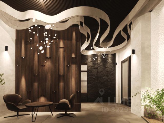 Интерьер вестибюля с кофейней, камином и панорамными видами выполнен в благородных приглушенных тонах с авторским панно из мозаики. Это уютное и полезное пространство, чтобы назначить встречу, поработать или дождаться такси. А в любимой кофейне жители всегда могут насладиться чашечкой свежесваренного кофе с горячим круассаном или купить свежий хлеб.