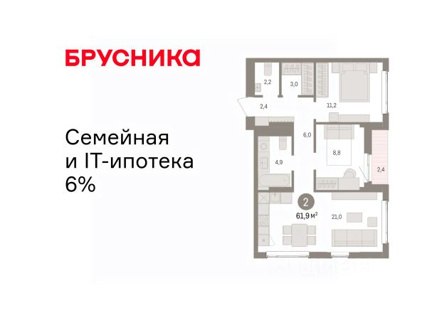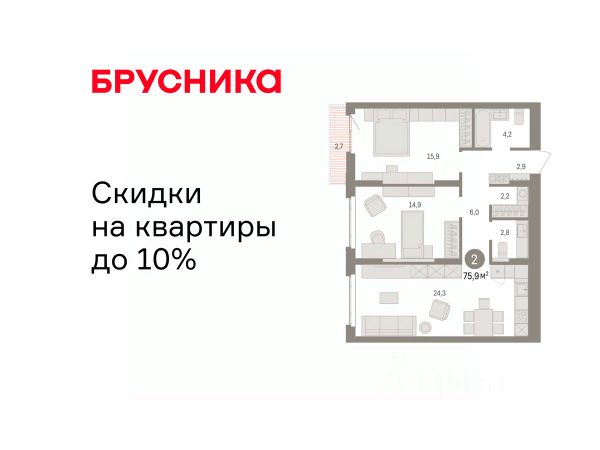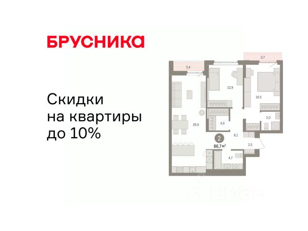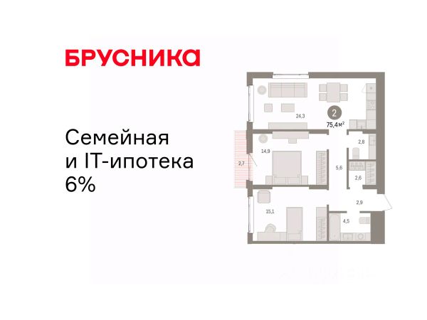 Квартира с кухней-гостиной и двумя спальнями в квартале "Депо". Особенности планировки: балкон, вид во двор, второй санузел, гардеробная, предчистовая отделка, разнесённые спальни. квартиры в нашей базе: ДЕП04-Ж8.6.1. Квартал "Депо" расположен в активно развивающейся части Сортировки, на месте, где раньше был завод "Электротранс". Преимущества Сортировки — развитая инфраструктура. В пешей доступности — супермаркеты, остановки городского транспорта, поликлиники, детские сады, школы, гимназии, торговые центры, автоцентры, рынок с большим и доступным по стоимости выбором товаров, парк РЖД и парк с аттракционами Таганская Слобода. Квартал "Депо" расположен в границах улиц Пехотинцев — Таватуйская — Сортировочная — Новая (проектируется). Благоустройство квартала основано на трёх принципах. Первый — особое внимание к воде. Архитекторы Брусники создадут внутри застройки систему дождевых садов, которые будут фильтровать сток (в том числе с крыш зданий) и снижать нагрузку на ливневую канализацию . Второй принцип — разнообразие. Мы высадим на улицах ивы, липы, яблони разных сортов, спиреи, лапчатку и дерен, а во дворах — березы, липы, черёмухи, пузыреплодник, кизильник и манчжурский орех, который в Екатеринбурге почти не представлен. Третий принцип — зонирование. Центральный бульвар мы насытим площадками для игр детей и спокойного отдыха взрослых, на площади перед детским садом расположим окруженные деревьями плэйхабы, летние веранды кафе, открытое пространство с запоминающимся артом. #ZSC8ta 2-комнатная квартира в новостройке с отделкой в районе Железнодорожный в городе Екатеринбург.