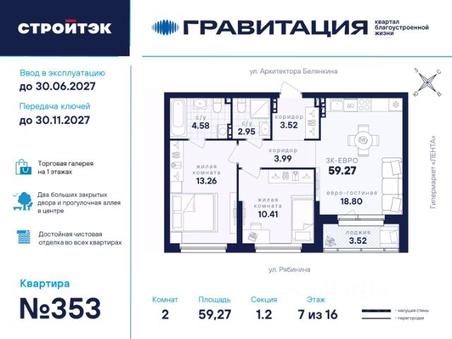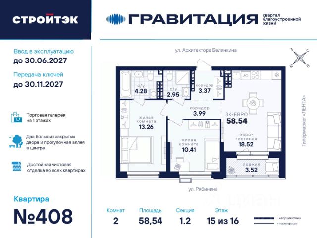 Гравитация — уютный и обособленный, и в то же время открытый и просторный квартал. Всё рядом: супермаркеты и парки, кино и рестораны, школы и сады. В нескольких шагах набережная реки Патрушихи.