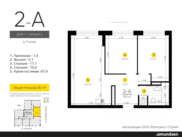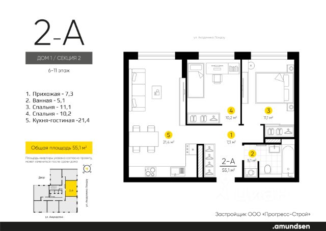 О компании: "Прогресс" — девелопер федерального уровня. Создаём современный стиль жизни с 2012 года. Совершенствуем культуру нашего общества. Предвосхищаем ваши ожидания. "Прогресс" - группа компаний полного цикла. Мы проектируем, строим и обслуживаем свои жилые комплексы. Входим в топ - 10 застройщиков по потребительским качествам ЖК по версии "Единый ресурс застройщиков". Мы - обладатель федеральных и европейских наград в сфере недвижимости: Urban Awards, European Property Awards, "Надёжный застройщик России" и др. Новый проект от создателей жилого квартала "Amundsen" "Progress Академический" - это место, где безопасно и уютно. Вы прочувствуете настоящую жизнь в режиме "здесь и сейчас". Удобная локация делает этот проект максимально привлекательным для тех, кто устал от суеты и ограниченных пространств. Безопасный благоустроенный двор, умные планировки и зонирование территории все это позволит почувствовать новый уровень комфорта. Соседство с лесным массивом, улучшает качество воздуха и создает уникальное экологически чистое окружение. Умные планировки. При проектировании дома наши архитекторы закладывают систему SMART- планировок: - Только разумное распределение полезной площади, которое отвечает реальным потребностям человека. Жители экономят деньги на протяжение всей жизни, ведь используется каждый уголок квартиры. - Несущие стены вынесены по периметру квартиры. Это дает возможность осуществлять перепланировку и реализовывать свои архитектурные идеи. - Все комнаты правильной формы, что упрощает расстановку мебели. Благоустроенные дворы. Наполнение двора детально продумано, с учетом потребностей каждого жителя. Детские площадки для разных возрастов, зоны отдыха, зеленые аллеи и пешеходные дорожки. В центре двора предусмотрен амфитеатр для общих встреч жителей и больших мероприятий. Собственная сервисная компания 24/7 поддерживает чистоту территории жилого квартала. Безопасность. Комплексная безопасность является одним из главных преимуществ. Проектом предусмотрено: закрытая придомовая территория без машин и круглосуточное видеонаблюдение без слепых зон, доступ через специальное мобильное приложение. Удобная локация. Инфраструктура обеспечит комфортную жизнь каждому. Это пространство с уникальной образовательной, спортивной и культурной инфраструктурой, необходимой для развития всесторонней личности. Парки и прогулочные зоны Продуктовые магазины "Пятерочка" и "Магнит" Тренажерные залы и фитнес-клубы 4 школы 9 детских садов Остановки общественного транспорта в 10 минутах ходьбы Технические преимущества: - система очистки водопроводной воды до питьевой - система телеметрии - установлены входные двери с тепло-шумоизоляцией - радиаторы отопления - наружные стены с встроенной шумоизоляцией - фасадная дренажная система позволяет избежать затопления фасадов и образования грязевых луж. Способы приобретения квартиры: • С помощью материнского капитала • В ипотеку Забронируйте квартиру по номеру телефона офиса продаж.