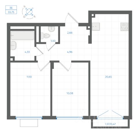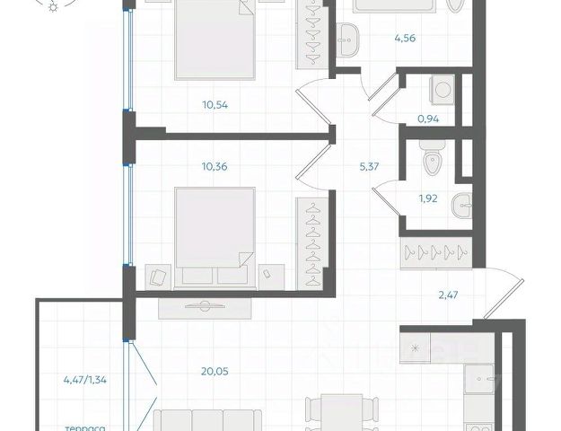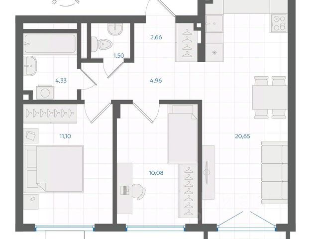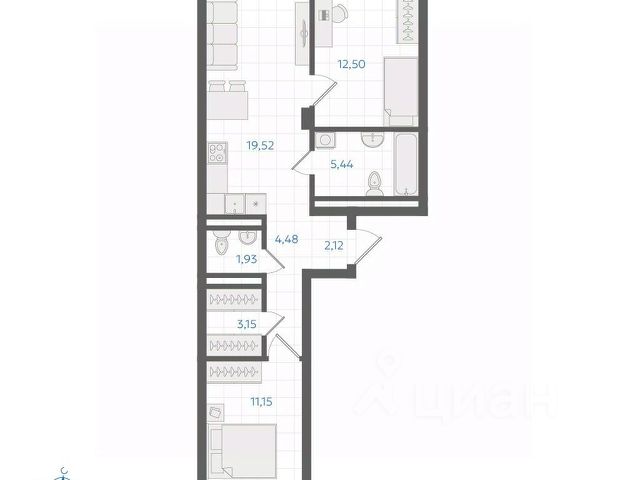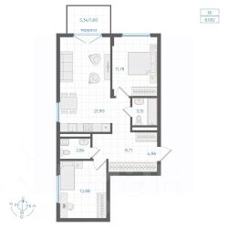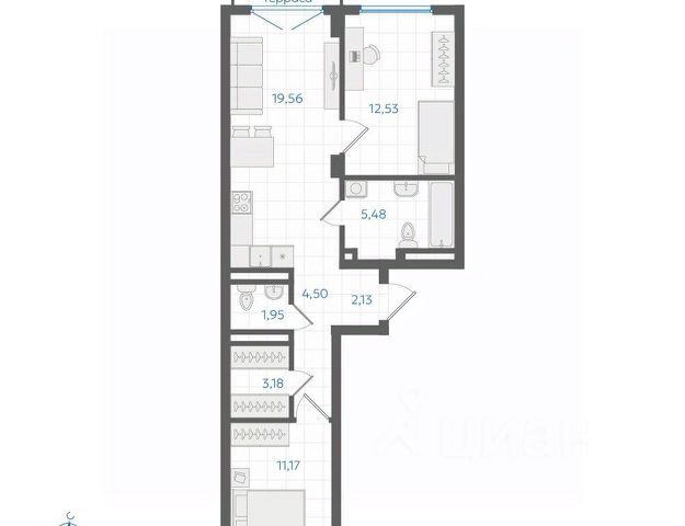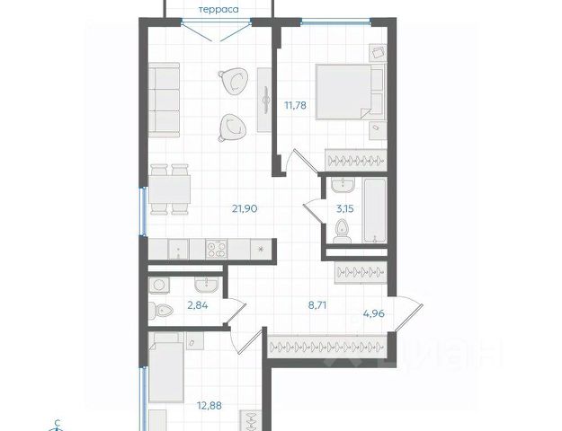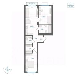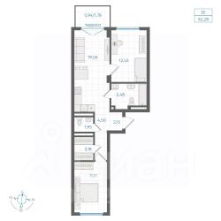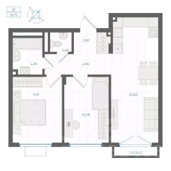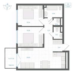 Арт. 118596330 В продаже 2-комнатная квартира 49,43 м2 в комплексе "Центральный парк" комфорт-класса.