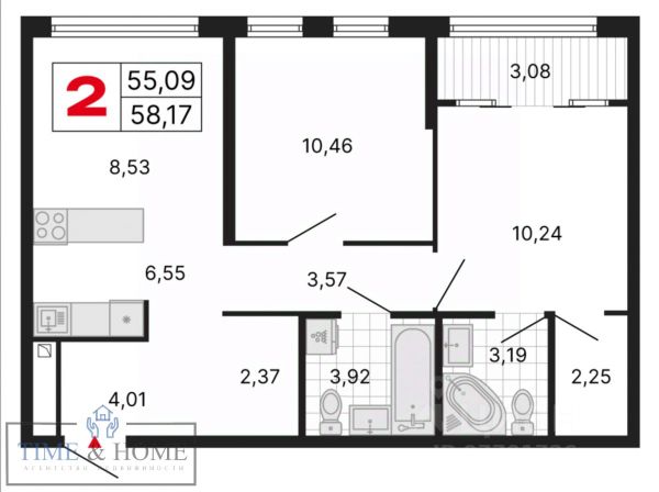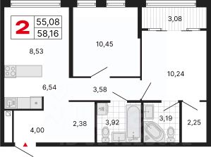 2-комн. квартира от застройщика с отделкой в ЖК "ДНК. Дом на Куйбышева" на 24 этаже. Общая площадь: 58.19 кв.м., жилая: 20.69 кв.м., площадь кухни: 6.54 кв.м. Комнаты изолированные, все окна выходят на одну сторону. В квартире одна лоджия, два совмещенных санузла. Высота потолков 2.7 м.