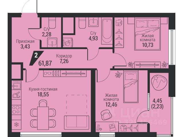Жилой квартал "К100" на Космонавтов, 100 будет состоять из трех монолитно-кирпичных домов, объединенных общим двором. Застройщик компания "Практика". Планировки начинаются от 44,8 м² и доходят до 159,5 м². На каждом этаже располагается от восьми квартир классического и евроформата от двух до пяти комнат. Застройщик предлагает два вида отделки: white box и чистовую. Есть возможность перепланировки. Двор с ландшафтным озеленением разделен на три зоны. Для детей игровые площадки с меловыми досками и уличными шахматами, для взрослых лаунж-зона с креслами и столиками для отдыха, для спортсменов воркаут-площадка. На первом этаже лобби-клуб с игровыми комнатами, залом для йоги, коворкингом и мини-кинотеатром, колясочные и велосипедные помещения. Для автомобилистов предусмотрены гостевые места и подземный паркинг с доступом на лифте. На всей территории жилого комплекса установят видеонаблюдение. В доме будет работать консьерж-сервис в режиме 24/7. Дополнительные услуги включают клининг, выгул домашних животных, доставку еды из ресторанов и вызов такси. Также предусмотрена система "Умный дом". Рядом с жилым комплексом находятся сосновый бор, школы, детские сады, медицинские учреждения, торговые центры и супермаркеты, остановки общественного транспорта и станция метро. В шаговой доступности от дома откроется новый корпус уникальной гимназии "Арт-Этюд" — многопрофильного центра общего и художественного образования для детей от 3 до 18 лет. Строительство первой очереди жилого квартала "К100" на Космонавтов, 100 завершится в четвертом квартале 2026 года. Купить 2-комнатную квартиру в новостройке в районе Орджоникидзевский в городе Екатеринбург.