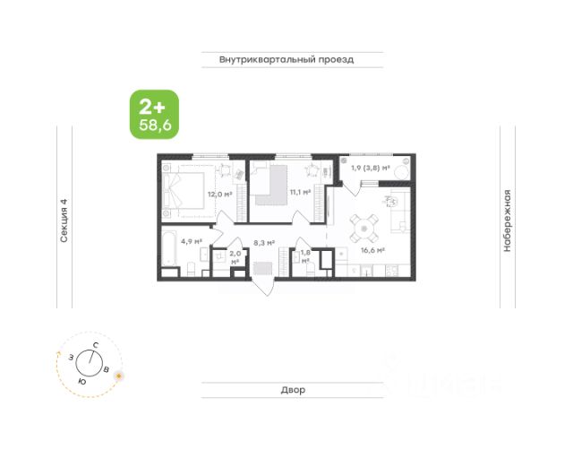 Двухкомнатная квартира для современной семьи Кухня-гостиная с выходом на лоджию — светлое, просторное пространство для встреч, семейных ужинов и отдыха Родительская спальня с местом под шкаф становится уютным уголком для отдыха, обеспечивая идеальное сочетание приватности и функциональности Комната, которую можно использовать как детскую или кабинет, с продуманными местами под хранение, позволяющими легко организовать пространство Два санузла один с местом под ванну отвечают всем требованиям современной жизни Прихожая с местом под шкаф встречает продуманной системой хранения, создавая порядок с самого порога Отдельное помещение под прачечную. Стирка и сушка белья будут проходить незаметно, без необходимости загромождать ванную или балкон