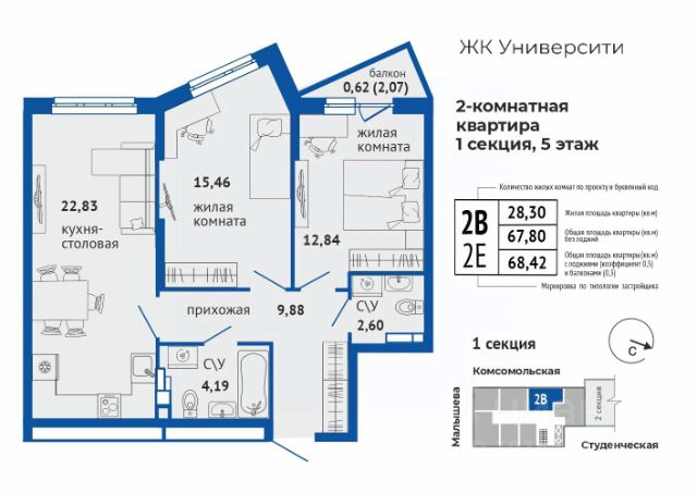Дом 4 Ввод в эксплуатацию: вторая половина 2026 года (возможен досрочный ввод). Класс дома: комфорт. Отделка: чистовая (под ключ) включена в стоимость. Скидка при выборе предчистовой отделки. Размер скидки уточняйте в отделе продаж. Вид из окон: на дендропарк и во двор-парк. Б.26 дом на высоте современный жилой комплекс в районе Втузгородок (пересечении улиц Блюхера и Мира). До центра города 20 минут ходьбы. В шаговой доступности находятся: ВУЗы (Уральский федеральный университет, Юридическая академия) Дендрологический парк. школы (Гимназии 35, 47, 108, Лицей 130) детские сады ( 421, 423, 332, 352) остановки общественного транспорта (ул. Мира, ул. Блюхера, ТК Современник). торговые центры (Апельсин, Современник, Галерея 11, Blissco молл) Современная архитектура. Долговечные фасады из навесных панелей и штукатурки, увеличенные окна и французские балконы формируют уникальный узнаваемый образ. Ночная подсветка выделяет дом среди застройки района и подчеркивает выразительность его силуэта. Двор без машин. Игровые площадки для детей разных возрастов, места отдыха и занятий спортом для взрослых не соседствуют с парковкой. Динопарк. Игровые зоны созданы в стиле таинственного мира динозавров. Парк во дворе. Многоуровневое озеленение c прогулочными дорожками, беседками и качелями. Три уровня безопасности. Контроль доступа по карте жителя, эффективная система видеонаблюдения, консьерж-сервис. Дизайнерские холлы. Парадный холл с остеклением в пол, зонами ожидания, гостевым санузлом и санузлом для мытья лап животным, а также колес велосипедов и колясок. Сервисная компания от застройщика. Обслуживанием дома будет заниматься профессиональная команда СКМ Сервис Строительные и технические преимущества. Индивидуальный тепловой пункт: снижает затраты на отопление. Система очистки улучшит качество воды в доме. Пятикамерные окна задержат шумы и холод. Клапан вентиляции позволит проветрить комнату, не устраивая сквозняк. Горизонтальная разводка отопления: трубы спрятаны в полу. Счетчики с телеметрией. Отдельный счетчик на отопление у каждой квартиры. Отведение конденсата для кондиционеров. Высокий уровень шумоизоляции у стены квартир. Бесшумные, скоростные лифты. Дополнительно можно заказать кухню и ванную комнату, чтобы не тратить время и силы на ремонт при переезде. В улучшенной отделке санузла. предусмотрено все: матовая плитка, натяжной потолок, теплый пол, современная сантехника, зеркало с подсветкой, мебель и освещение. Это стильное и функциональное пространство. В готовой кухне мы предусмотрели все необходимое для эргономичного и функционального пространства. Кухонный гарнитур с надежной фурнитурой и встроенная техника, которая включает в себя холодильник, духовой шкаф, варочная панель, вытяжка, посудомоечная машина. Для микроволновки предусмотрена отдельная ниша. На выбор — три стильных решения, подходящих под разные вкусы и сценарии интерьера. От теплой классики до сдержанного минимализма: Кашемир, Серый шелк, Бланж. Кухня и санузел могут быть вкл