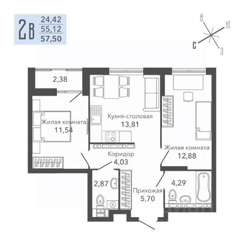 ЖК "Тихий центр-4", 1 этап 2 секция, секция 2, Квартира 243