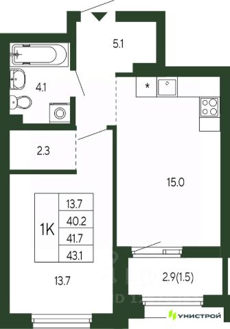 Квартира будет выполнена в предчистовой отделке.