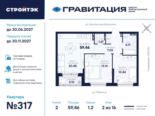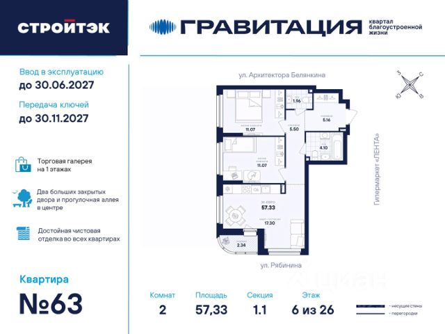 Гравитация — уютный и обособленный, и в то же время открытый и просторный квартал. Всё рядом: супермаркеты и парки, кино и рестораны, школы и сады. В нескольких шагах набережная реки Патрушихи.