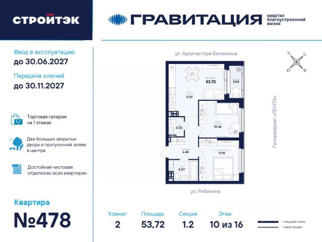 Новый квартал благоустроенной жизни "Гравитация" мы разместили в периметре улиц Рябинина и Академика Ландау. У квартала 5 этапов строительства, а всю работу мы завершим к 2030 году.