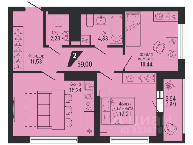 Двухкомнатная квартира с балконом, гардеробной и двумя санузлами на 5 этаже. Окна выходят на ул. Библиотечная. Чистовая отделка под ключ. Дом в 15 минутах от центра города. Рядом остановки общественного транспорта, школы и детские сады.