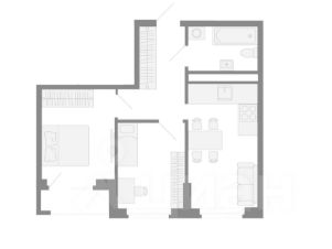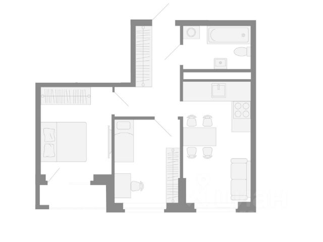 Квартира с кухней-гостиной и двумя спальнями в квартале "Траектория". Особенности планировки: предчистовая отделка, разнесённые спальни, стартовая цена.