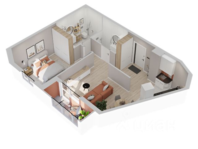 Данный тип планировки подойдёт как для молодой семьи, так и для более старшего поколения.