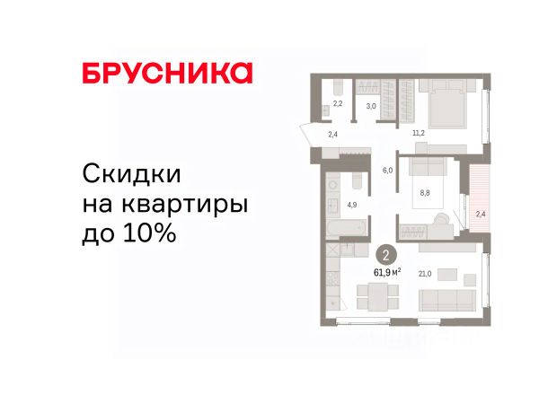 Квартира с кухней-гостиной и двумя спальнями в квартале "Депо". Особенности планировки: балкон, вид во двор, второй санузел, гардеробная, предчистовая отделка, разнесённые спальни. квартиры в нашей базе: ДЕП04-Ж8.6.1. Квартал "Депо" расположен в активно развивающейся части Сортировки, на месте, где раньше был завод "Электротранс". Преимущества Сортировки — развитая инфраструктура. В пешей доступности — супермаркеты, остановки городского транспорта, поликлиники, детские сады, школы, гимназии, торговые центры, автоцентры, рынок с большим и доступным по стоимости выбором товаров, парк РЖД и парк с аттракционами Таганская Слобода. Квартал "Депо" расположен в границах улиц Пехотинцев — Таватуйская — Сортировочная — Новая (проектируется). Благоустройство квартала основано на трёх принципах. Первый — особое внимание к воде. Архитекторы Брусники создадут внутри застройки систему дождевых садов, которые будут фильтровать сток (в том числе с крыш зданий) и снижать нагрузку на ливневую канализацию . Второй принцип — разнообразие. Мы высадим на улицах ивы, липы, яблони разных сортов, спиреи, лапчатку и дерен, а во дворах — березы, липы, черёмухи, пузыреплодник, кизильник и манчжурский орех, который в Екатеринбурге почти не представлен. Третий принцип — зонирование. Центральный бульвар мы насытим площадками для игр детей и спокойного отдыха взрослых, на площади перед детским садом расположим окруженные деревьями плэйхабы, летние веранды кафе, открытое пространство с запоминающимся артом. #ZSC8ta Продам 2-комнатную квартиру с отделкой рядом с метро Уральская.