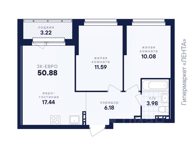• ✅ Минимальная площадь: 57,2 м²