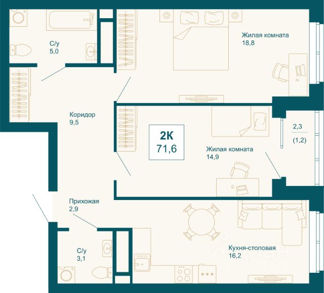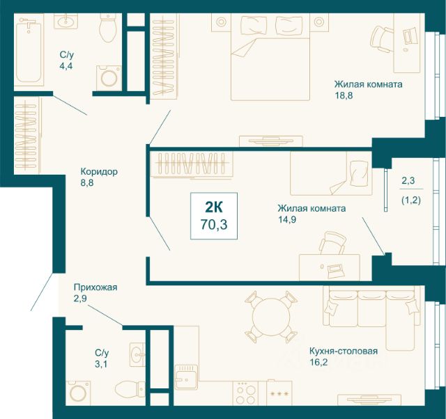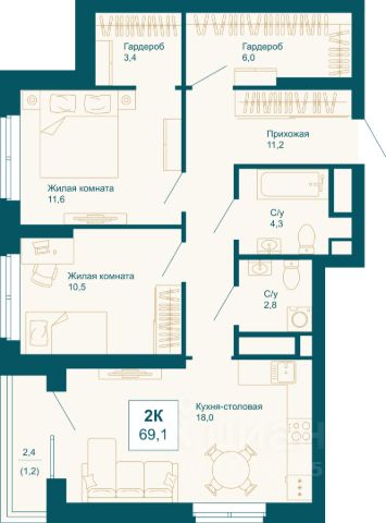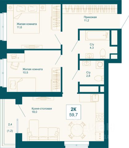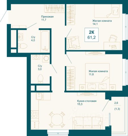 Продаётся 2-комнатная квартира в строящемся доме (Дом 2.1), срок сдачи: II-кв. 2027, общей площадью 61.2 кв.м., на 21 этаже. Расположение, транспортная доступность