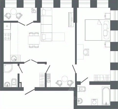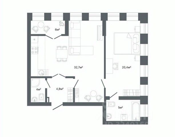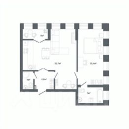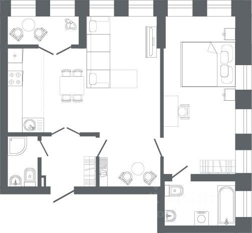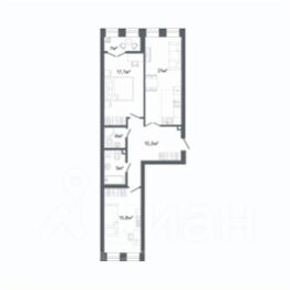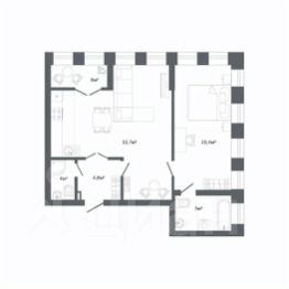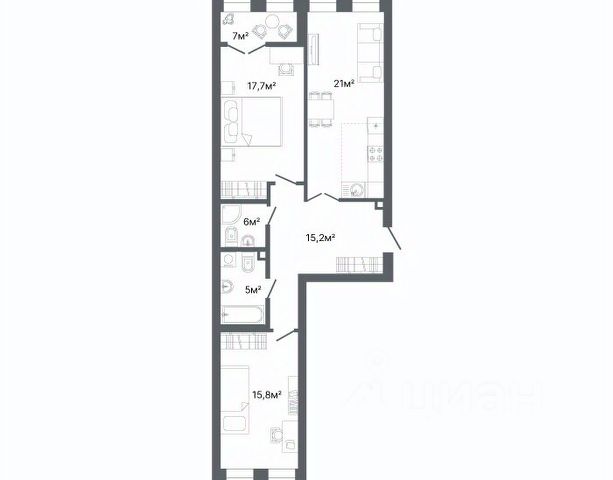 Квартира с кухней-гостиной и двумя спальнями в квартале "Депо". Особенности планировки: лоджия, разнесённые спальни, предчистовая отделка, балкон.