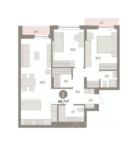 Квартира с кухней-гостиной и двумя спальнями в квартале "Депо". Особенности планировки: второй санузел, гардеробная, вид во двор, разнесённые спальни, предчистовая отделка, балкон. квартиры в нашей базе: ДЕП04-Ж8.6.1. Квартал "Депо" расположен в активно развивающейся части Сортировки, на месте, где раньше был завод "Электротранс". Преимущества Сортировки — развитая инфраструктура. В пешей доступности — супермаркеты, остановки городского транспорта, поликлиники, детские сады, школы, гимназии, торговые центры, автоцентры, рынок с большим и доступным по стоимости выбором товаров, парк РЖД и парк с аттракционами Таганская Слобода. Квартал "Депо" расположен в границах улиц Пехотинцев — Таватуйская — Сортировочная — Новая (проектируется). Благоустройство квартала основано на трёх принципах. Первый — особое внимание к воде. Архитекторы Брусники создадут внутри застройки систему дождевых садов, которые будут фильтровать сток (в том числе с крыш зданий) и снижать нагрузку на ливневую канализацию . Второй принцип — разнообразие. Мы высадим на улицах ивы, липы, яблони разных сортов, спиреи, лапчатку и дерен, а во дворах — березы, липы, черёмухи, пузыреплодник, кизильник и манчжурский орех, который в Екатеринбурге почти не представлен. Третий принцип — зонирование. Центральный бульвар мы насытим площадками для игр детей и спокойного отдыха взрослых, на площади перед детским садом расположим окруженные деревьями плэйхабы, летние веранды кафе, открытое пространство с запоминающимся артом. #2SCV7a Продам 2-комнатную квартиру первичка в районе Железнодорожный в городе Екатеринбург.