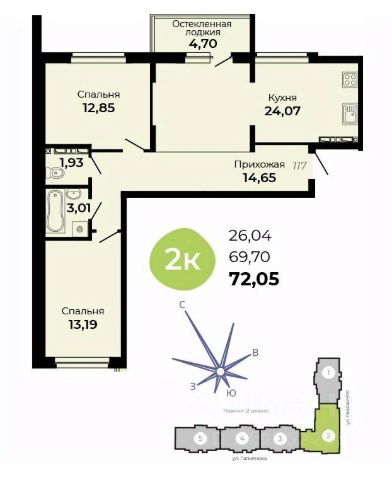 Продается 2-к квартира в жилом комплексе Центральный 5