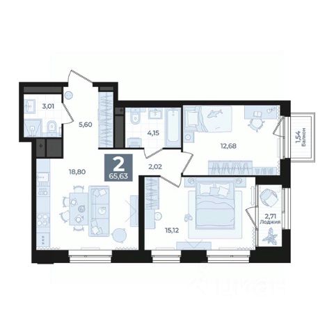 Двухкомнатная квартира с балконом и двумя санузлами на 8 этаже, большая кухня-гостиная. Окна выходят во двор. Чистовая отделка под ключ. Дом в 15 минутах от центра города. Рядом остановки общественного транспорта, школы и детские сады.