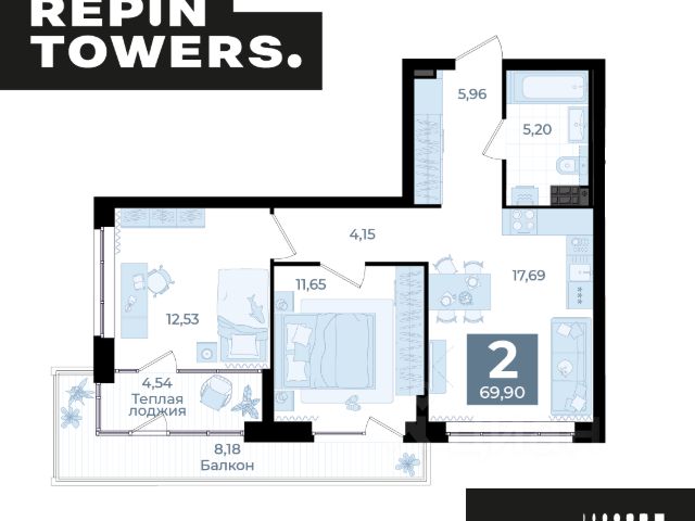 Дом 3 Ввод в эксплуатацию первая половина 2026 г. (возможен досрочный ввод). Класс дома: комфорт. Отделка: чистовая. Архитектурное решение: строгий фасад дома выполнен в глубоком синем цвете и дополнен выразительным элементом, напоминающим огромную линзу. Объем здания также формируют навесные балконы. В квартирах с такими балконами предусмотрены еще и теплые лоджии. Вид из окон: на городскую застройку, двор, школу и детский сад. ЖК Repin Towers три башни разной этажности объединённые общим двором. Комплекс расположен на пересечение улиц Репина Заводская. На территории запроектирован детский сад, до школы около 100 метров, пересекать проезжую часть не придется. В шаговой доступности находятся: школы ( 41, 57, 168, 121, Гимназия 202 "Менталитет") детские сады (7, 67, 348, 510) остановки общественного транспорта (ул. Репина, Начдива Васильева, Металлургов) торговые центры (Мега, Радуга-парк) парк отдыха Радуга набережная Верх-Исетского пруда с яхт-клубом "Коматек" Современная архитектура. Минимализм и круглые окна — особенность, выделяющая дом среди окружающей застройки. Двор без машин. Игровые площадки для детей разных возрастов, места отдыха и занятий спортом для взрослых не соседствуют с парковкой. Релакс-зона. Шезлонги и зонтики, поворотные кресла и паровой камин для спокойного отдыха. Парк во дворе. Многоуровневое озеленение и система туманообразования. 3 уровня безопасности. Контроль доступа по карте жителя, эффективная система видеонаблюдения, консьерж-сервис. Дизайнерские холлы. Парадный холл с остеклением в пол, гостевым санузлом и зонами ожидания. Технический холл. Для разгрузки строительных материалов, мебели и крупногабаритных вещей предусмотрен отдельный технический холл. В нем расположен грузовой лифт и санузел для мытья лап животным, а также колес велосипедов и колясок. Сервисная компания от застройщика. Обслуживанием дома будет заниматься профессиональная команда. Строительные и технические преимущества. Индивидуальный тепловой пункт: снижает затраты на отопление. Система очистки улучшит качество воды в доме. Пятикамерные окна задержат шумы и холод. Клапан вентиляции позволит проветрить комнату, не устраивая сквозняк. Горизонтальная разводка отопления: трубы спрятаны в полу. Счетчики с телеметрией. Отдельный счетчик на отопление у каждой квартиры. Отведение конденсата для кондиционеров. Высокий уровень шумоизоляции у стены квартир. Бесшумные, скоростные лифты. Реализация строящегося объекта осуществляется от застройщика по договору участия в долевом строительстве в соответствии с ФЗ-214 "Об участии в долевом строительстве", застройщик ООО "Специализированный Застройщик Репина". Варианты оплаты: ипотека, индивидуальные условия рассрочки, trade in, материнский и жилищные сертификаты, подробности в отделе продаж. Купить 2-комнатную квартиру с балконом в районе Верх-Исетский в городе Екатеринбург.