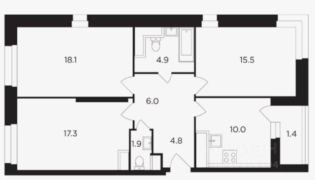 Представляем Вашему вниманию Просторную Квартира в Доме Комфорт-Класса в жилом комплексе Эклипт. Очень удачная и комфортная планировка: просторная кухня-гостиная 20кв.м. (можно зонировать площадь на отдельные комнаты с окнами, либо оставить кухню-гостиную с двумя окнами), спальня 15,5кв.м., функциональная прихожая, совмещенный сан.узел 5,4кв.м, лоджия - более 4кв. Квартира расположена на втором этаже.