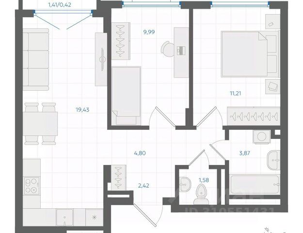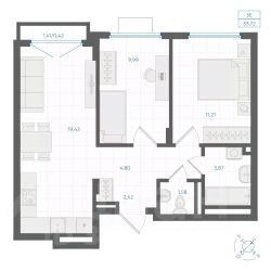 • ✅ Минимальная площадь: 38,3 м²