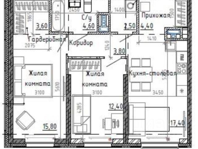 Комнаты полностью меблированные,прихожая с большим шкафом .