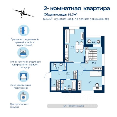 • ✅ Минимальная площадь: 51,8 м²