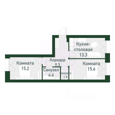 Ванная Комната - 9,3 кв.м. Коридор - 17,7 кв.м