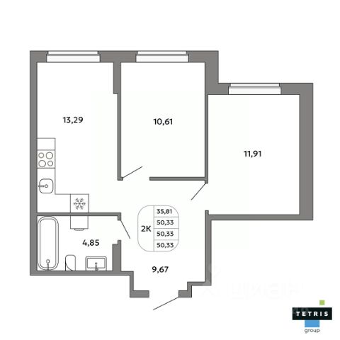 Объект N 194634. Продаётся уютная квартира эргономичной планировки, все комнаты правильной формы- фактически вы приобретаете 2 отдельные комнаты и просторную гостиную с функциональной кухней в доме комфорт класса!