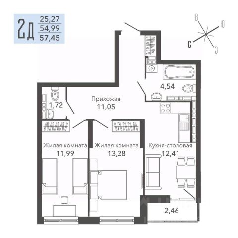 Продается просторная двухкомнатная квартира 69 кв.м. - отличное предложение