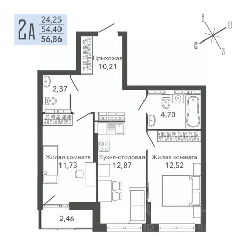 Площадь комнаты - 17.02м2