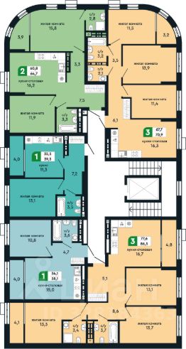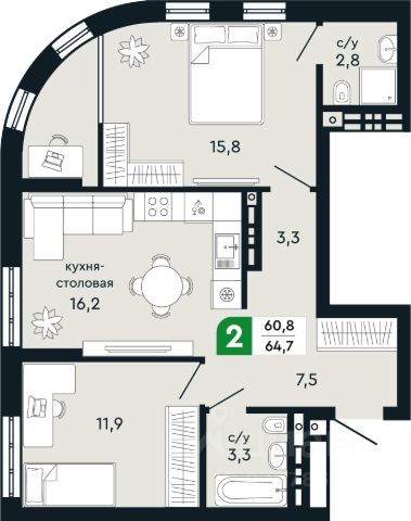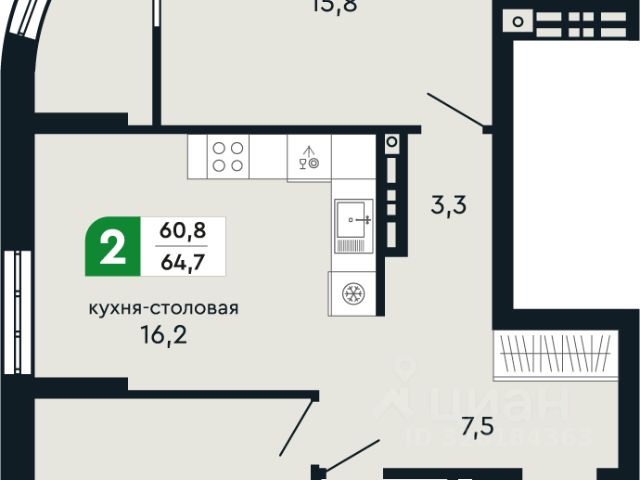 Общая площадь квартиры - 60.08м2