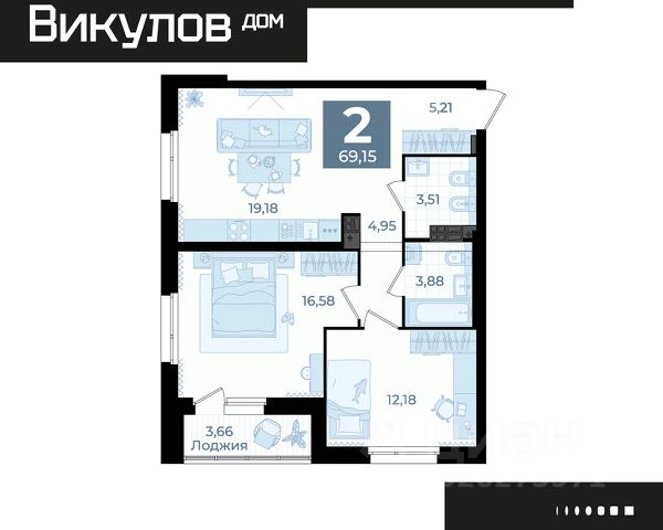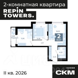 Продается 2-комн. квартира с отделкой в ЖК "ДНК. Дом на Куйбышева" на 18 этаже. Общая площадь: 58.84 кв.м., жилая: 21.78 кв.м., площадь просторной кухни-столовой: 17.7 кв.м. Квартира угловая, очень светлая, естественная вентиляция при открытии окон. В квартире одна лоджия, один совмещенный и один раздельный санузел. Высота потолков 2.7 м.