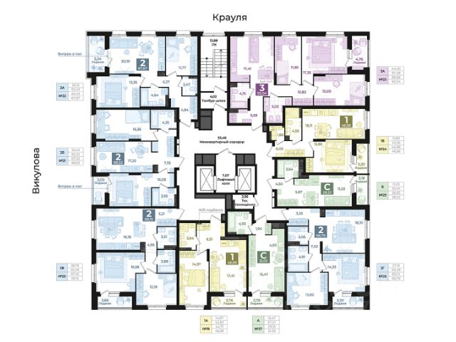 Сквозной холл с мягким лобби служит нейтральной территорией для экспресс-встреч и зоной ожидания для курьеров. В холлах предусмотрены гостевые санузлы, а также зоны с доступом только для жителей: колясочная и место для хранения малогабаритного снаряжения.
