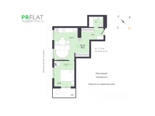 Квартира находится в корпусе 1. Дом монолитный, одноподъездный, высотой 25 этажей. На этаже 9 квартир. В подъезде 2 пассажирских и 1 грузовой лифт. Окончание строительства - 1 квартал 2026 года. Оформление сделки по договору долевого участия.