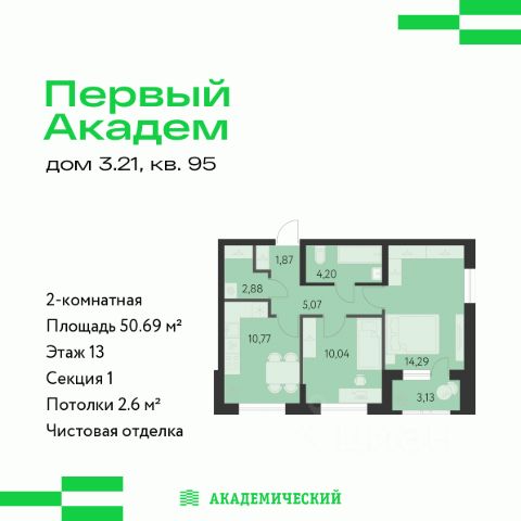 Продается 2-комнатная квартира площадью 43.66 кв.м. от девелопера "Академический" в жилом квартале "Первый Академ". Срок сдачи дома в 2028 году. Выгоды и скидка напрямую от застройщика. Дом расположен на въезде в район, отличается удобной транспортной развязкой. Рядом новая трамвайная линия и остановка общественного транспорта. Пять домов разной этажности. Эко-тренды во дворах. Холлы и фасады в стиле ар-деко. На территории квартала предусмотрено множество удобств для жильцов, включая видеонаблюдение 24/7, двор без машин, кладовые и подземный паркинг с выходом из лифта, коммерция на первых этажах.
