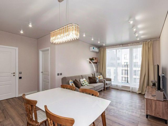 В квартире сделан хороший ремонт. На лоджии - панорамное остекление, в гостиной - большое окно.