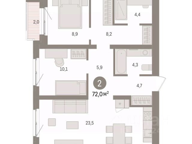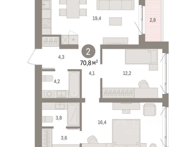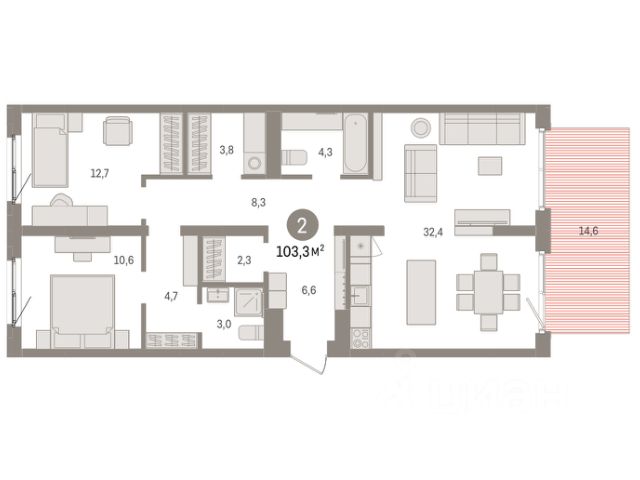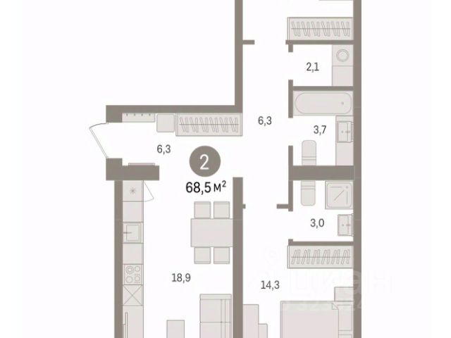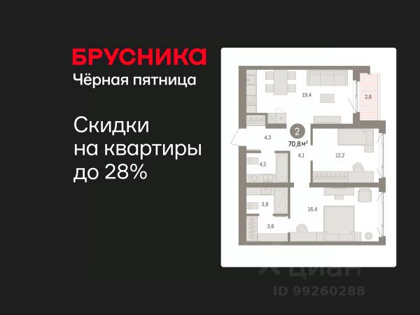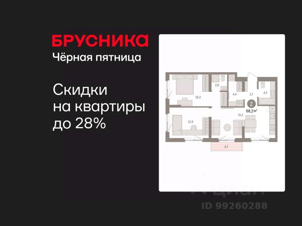 Успейте оформить бронирование по акционной цене! Период акции ограничен! Стоимость квартиры указана со скидкой, ваша экономия составит 500,000 RUB. По всем вопросам обращайтесь в офис продаж, мы вам все подробно расскажем! Квартира с кухней-гостиной и двумя спальнями в Южных кварталах. Особенности планировки: гардеробная, вид во двор, разнесённые спальни, предчистовая отделка, балкон. квартиры в нашей базе: ЮКВ08-Ж2.3.1. Жилой район "Южные кварталы" расположен в границах улиц Московская, Шаумяна и Фурманова, недалеко от автовокзала. До центра города — 10 минут на автомобиле. До станции метро "Чкаловская" — 15 минут пешком. Рядом находится парк, школа олимпийского резерва, несколько гимназий, лицей, детские сады и городская больница. "Южные кварталы" — проект комплексного редевелопмента территории, разработанный архитекторами Брусники совместно с голландскими бюро. Он разделен на несколько частей, каждая из которых имеет свой характер. Вдоль оживленной Московской появятся более высокие и крупные дома. Профиль спокойной и очень зелёной Шаумяна сформируют кварталы среднеи этажности. В глубине района мы расположим урбан-виллы, чуть дальше — башни-доминанты. Последние будут играть роль визуальных акцентов и впоследствии станут символами этого места. Ближе к Фурманова мы организуем образовательный кластер. Его составят два детских сада на 300 и 325 мест и школа, рассчитанная на 1500 учеников. Школа будет иметь спортивную зону, которая станет доступна и жителям района. Свяжет территорию сеть общественных пространств. Её центральным звеном станет зелёный променад, проходящий сквозь весь район и соединяющий его с парком 50-летия ВЛКСМ. #z68cgb