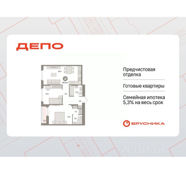 Квартира с кухней-гостиной и двумя спальнями в квартале "Депо". Особенности планировки: второй санузел, гардеробная, вид во двор, разнесённые спальни, предчистовая отделка, мастер-спальня, балкон. квартиры в нашей базе: ДЕП04-Ж1.6.2. Квартал "Депо" расположен в активно развивающейся части Сортировки, на месте, где раньше был завод "Электротранс". Преимущества Сортировки — развитая инфраструктура. В пешей доступности — супермаркеты, остановки городского транспорта, поликлиники, детские сады, школы, гимназии, торговые центры, автоцентры, рынок с большим и доступным по стоимости выбором товаров, парк РЖД и парк с аттракционами Таганская Слобода. Квартал "Депо" расположен в границах улиц Пехотинцев — Таватуйская — Сортировочная — Новая (проектируется). Благоустройство квартала основано на трёх принципах. Первый — особое внимание к воде. Архитекторы Брусники создадут внутри застройки систему дождевых садов, которые будут фильтровать сток (в том числе с крыш зданий) и снижать нагрузку на ливневую канализацию . Второй принцип — разнообразие. Мы высадим на улицах ивы, липы, яблони разных сортов, спиреи, лапчатку и дерен, а во дворах — березы, липы, черёмухи, пузыреплодник, кизильник и манчжурский орех, который в Екатеринбурге почти не представлен. Третий принцип — зонирование. Центральный бульвар мы насытим площадками для игр детей и спокойного отдыха взрослых, на площади перед детским садом расположим окруженные деревьями плэйхабы, летние веранды кафе, открытое пространство с запоминающимся артом. #z5CTeb