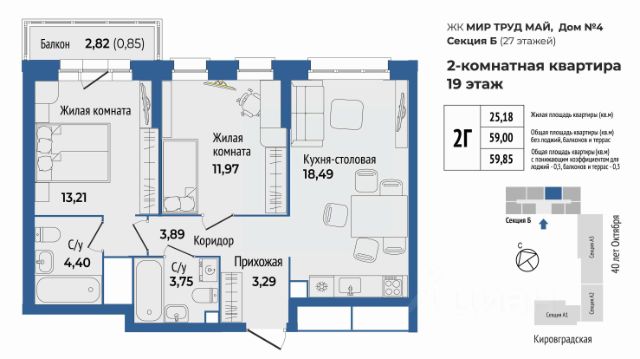 Продается 2 к квартира 191 в жилом комплексе МирТрудМай 4Б