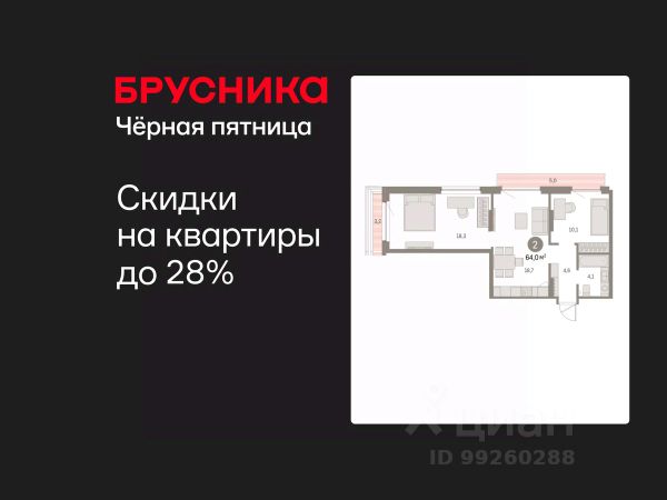 Продажа двухкомнатных квартир на улице Академика Вавилова в городе Екатеринбург от 7,9 млн руб.