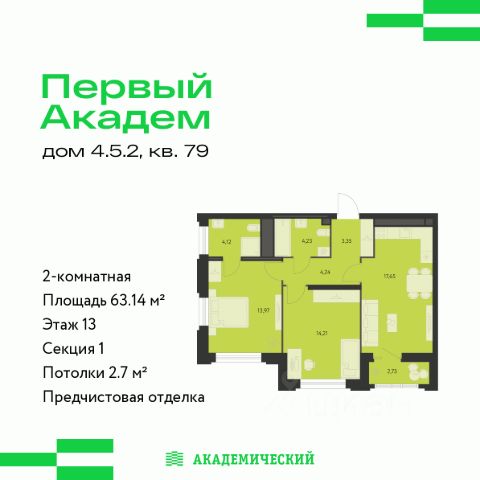 Арт. 102643993 Продается уютная теплая двухкомнатная квартира, расположенная на семнадцатом этаже семнадцатиэтажного монолитного дома с отличными видовыми характеристиками на прекрасные окрестности Академического района на запад со спальни и на восток с кухни и второй спальни. Высота потолков — 2.7 метра. В квартире в двух комнатах, в кладовке и в просторной прихожей лежит дорогая и качественная виниловая плитка, на кухне, на балконе и в туалете керамогранит, натяжной потолок везде установлен, на стенах в сан. узле плитка, в комнатах, в прихожей и на кухне флизелиновые обои. Во дворе всегда имеются парковочные места для автомобиля и современные детские и спортивные площадки. А также парковочные места есть по периметру дома. В квартире остается кухонный гарнитур со встроенной техникой (варочная поверхность, духовой шкаф, вытяжка), система хранения, шкаф в прихожей.