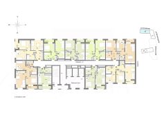 - детские развивающие площадки, разноуровневые камерные дворы, тихие общественные пространства, детские развивающие площадки и свободная территория для прогулок, спорта и отдыха на свежем воздухе. Такое решение обеспечивает безопасность жителей и защищает территорию от внешнего шума.
