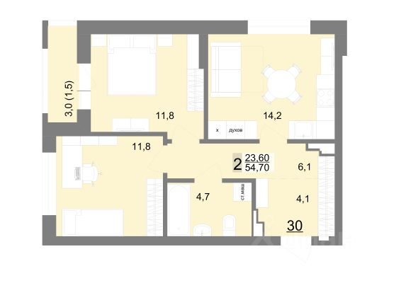 Арт. 120806321 Эту квартиру можно приобрести в ипотеку от 12,25% годовых специальное предложение только для покупателей "Самолет Плюс"