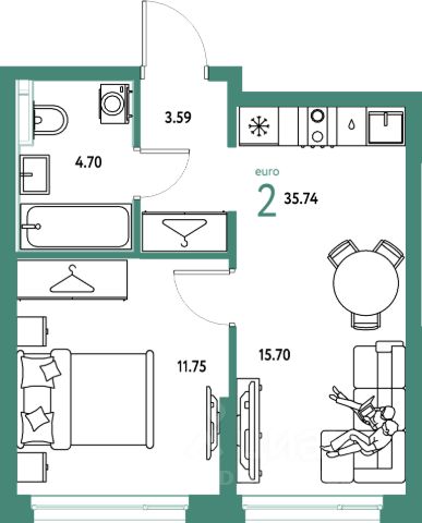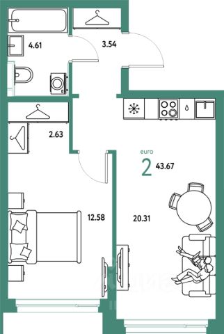 В квартире остаётся мебель по договоренности.