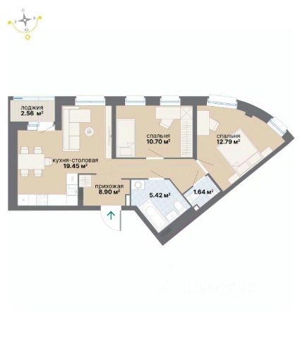 Есть застекленная большая лоджия, где можно оборудовать прекрасную зону отдыха. Просторная прихожая 8 м2.