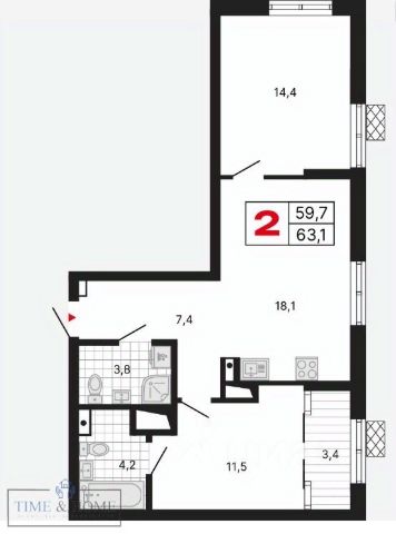 Продаётся 2-комнатная квартира в строящемся доме (Дом 1 секции 1-5), срок сдачи: II-кв. 2026, общей площадью 55.6 кв.м., на 8 этаже. Дом комфорт-класса на песчаном берегу Верх-Исетского пруда.